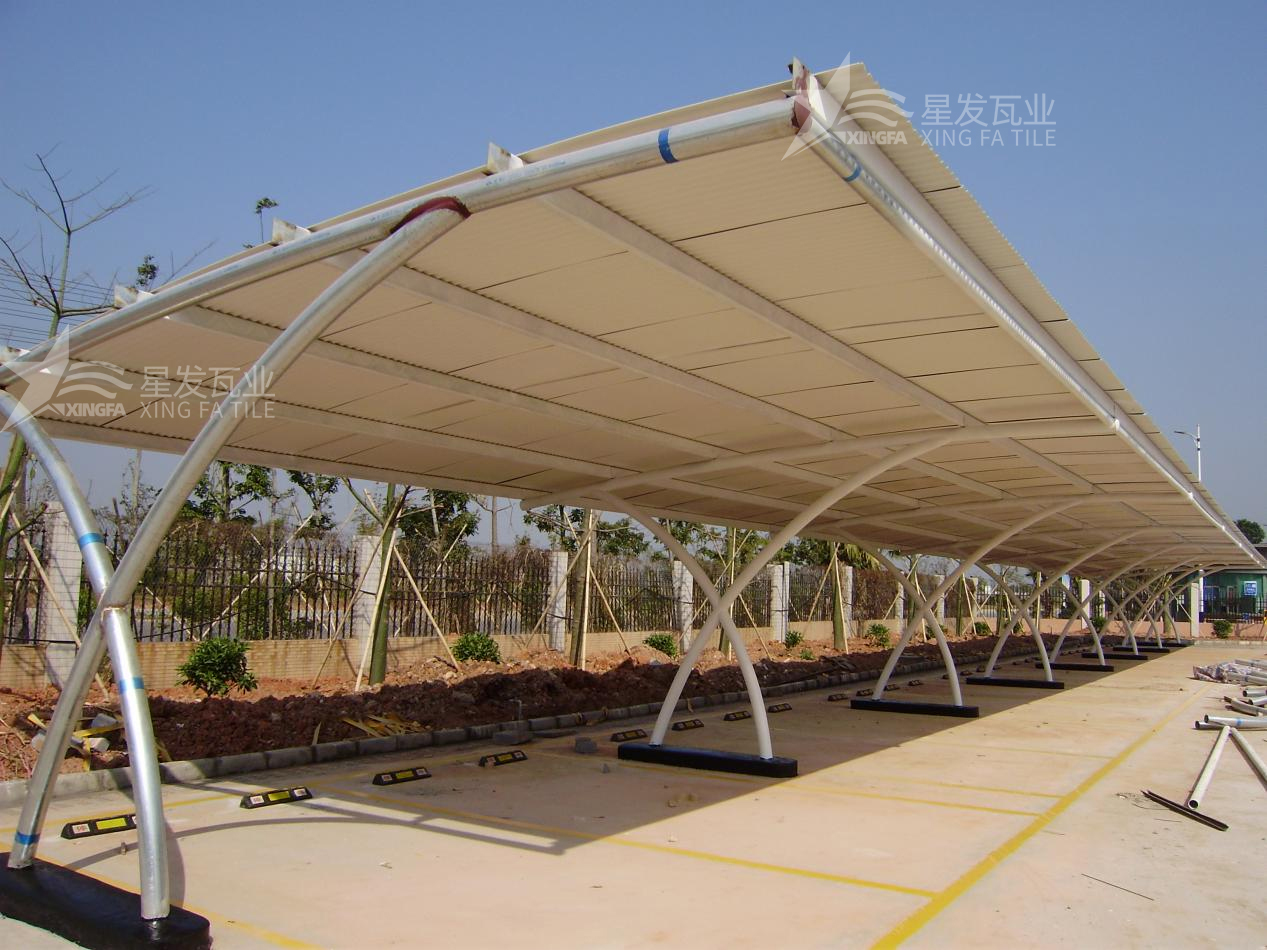 車棚和停車場:由于PVC瓦的安裝簡便性和防水性能,它們也常用于車棚、停車場和露天停車位的屋頂覆蓋。它們能夠有效地保護(hù)車輛免受日曬、雨水和其他天氣因素的影響。