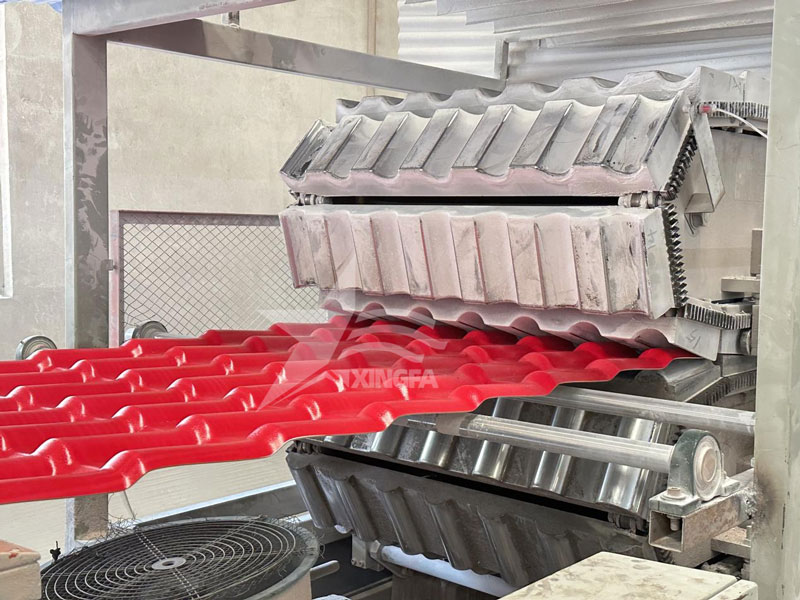 3. 硬化: 成型后的樹脂瓦進入硬化室,經(jīng)過精密的硬化處理。這一過程不僅提高了樹脂瓦的強度,還增加了其耐久性,確保在各種惡劣天氣條件下都能保持穩(wěn)定的表現(xiàn)。